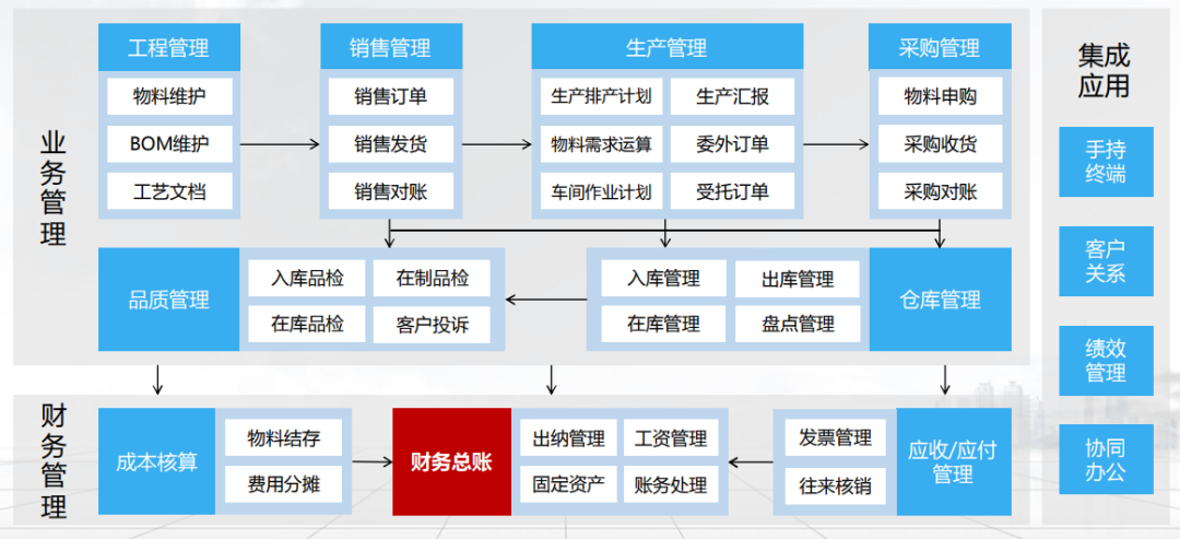 点晴模切ERP+财务模块=财务总账模块+供应链模块+移动解决方案