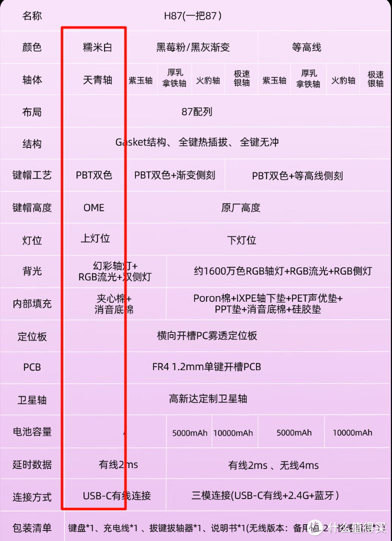 87块钱的只有一个版本,就是H87的糯米色天青轴。