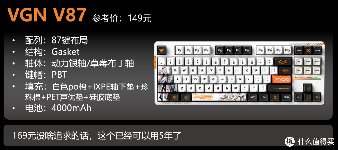 推这个产品的原因主要是VGN也算绕不过去了,这个产品已经快是时代的过去了。 键盘军备竞赛开始时的领跑者,三模、4000mAh电池、传统的PBT键帽、公模的设计,现在看起来也还算能看,只是产品力已经不行了。 但是,149元,还要什么自行车? 、200元-300元这里并不是绞肉机最狠的价位段,毕竟有钱的都买300多的了,没钱的会看更下面的100~200价位段,那才是真正意义的绞肉机。 这里基本都是三模连接了,但是普遍采用公模设计节约成本嘛,理解理解。但是由于预算比100~200价位段多一点,所以普遍开始卷配置了。体验进一步加强。 ilovbee B87