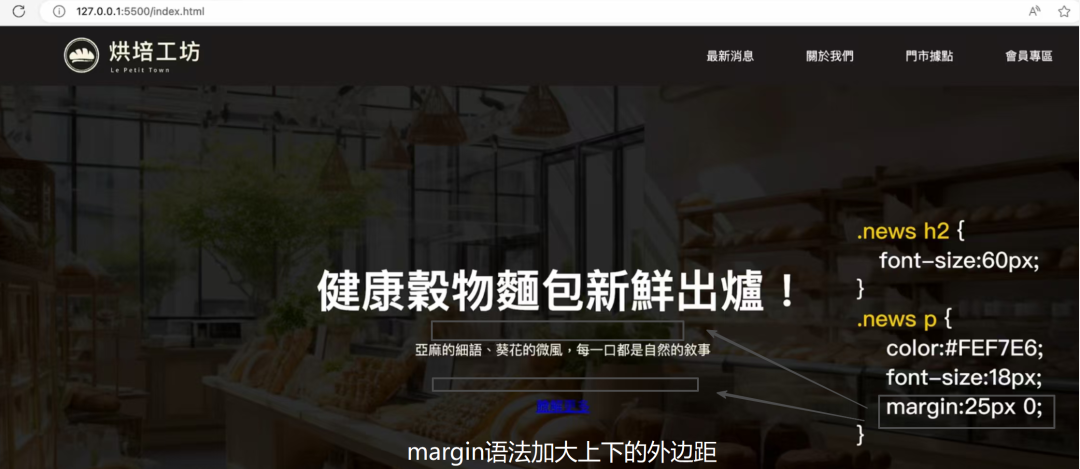 至于文字之间的空间也不能过于紧凑,这时就要引入我们之前学习过的margin语法