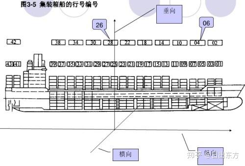 通常用箱位号表示每个集装箱在船舶上的准确位置,该箱位号由6位阿拉伯数字组成。这6位数字反映了箱子在船舶上的本维空间坐标。前2位表示集装箱的排号(行号),中间2位表示集装箱的列号,后2位表示集装箱的层号。