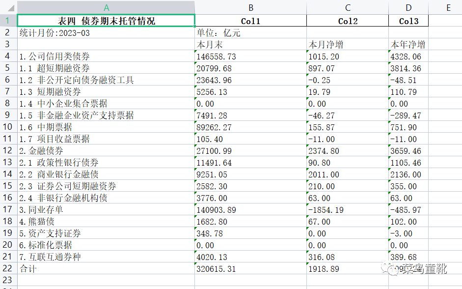 https://www.shclearing.com.cn/sjtj/tjyb/ 下载债券期末托管的pdf,pdf中表格如下: