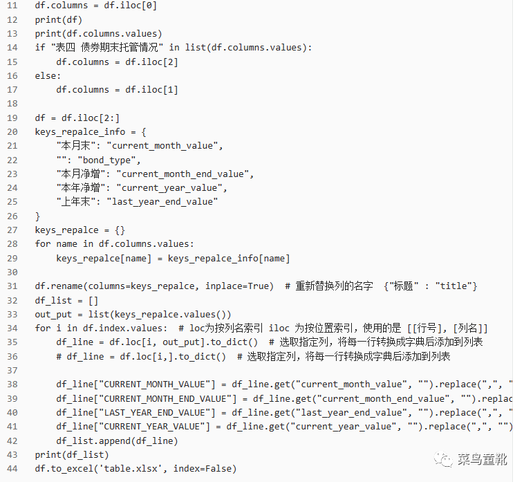 下面我们将解析过程中的df数据转换成json列表,截个图吧,公众号的代码粘贴太丑: