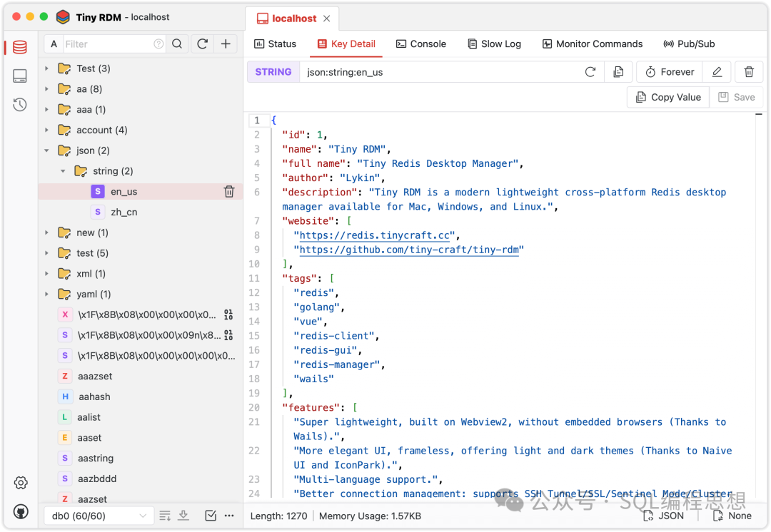 Tiny RDM 凭借其轻量级、跨平台、界面美观、功能全面等特点,成为了 Redis 管理工具中一个非常不错的选择。