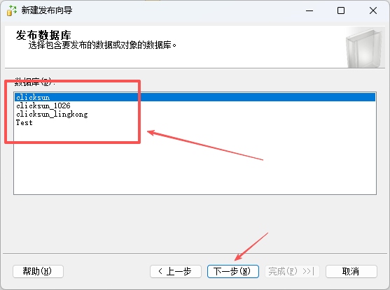 5.  选择订阅的数据库(注意:这里没有对应的数据库可以去创建,然后刷新一下即可),下一步