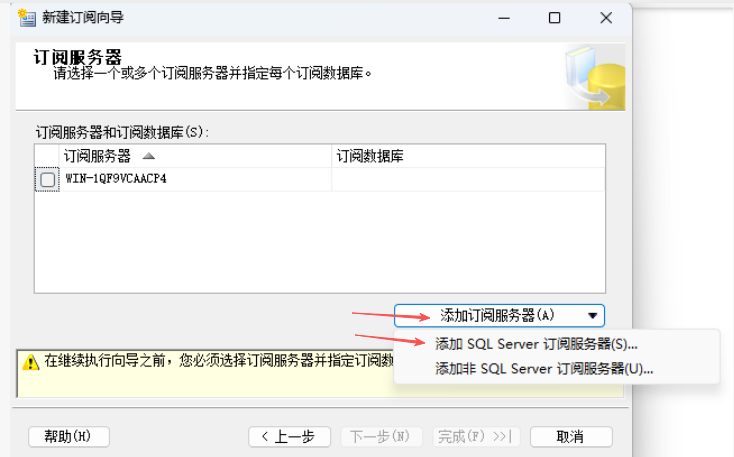 1. 在刚刚建立的发布右键-新建订阅,第一个页面默认下一步,选择订阅的发布,下一步