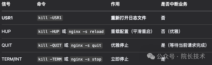 kill -USR1 $(cat /run/nginx.pid) 是一个绝对安全的操作: