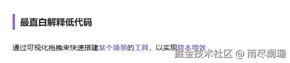 同学们好,我想结合自己的亲身经历,谈谈我对低代码开发的看法,讨论下人手和精力本就有限的小公司到底要不要搞低代码(中大厂无论资源还是KPI,并不在讨论范围)。 我对低代码最直白的理解通过可视化拖拽来快速搭建某个场景的工具,以实现降本增效 市面低代码有哪些?某个场景这个词很广泛,我们根据某个场景设计了各种低代码平台 单一场景