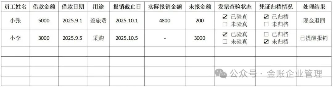 👉 正确做法:备用金借出去后,要求员工 1 个月内报销,最长不超 3 个月,超期未报的从工资里扣回(需在劳动合同里约定)
