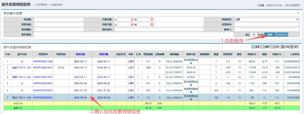 5.提交之后,可以到左侧功能菜单里找到“委外入库发票管理
