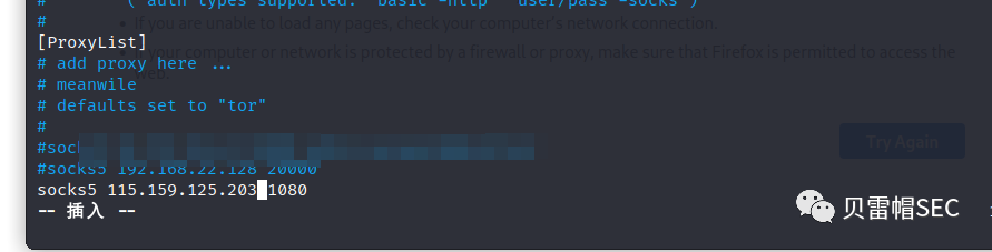 2、攻击机器配置socks5 代理,成功访问的第二层网络。