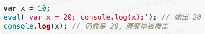 eval()在当前作用域内执行代码,可能意外修改或覆盖变量: