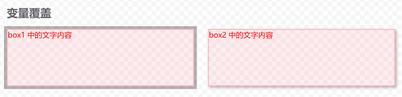 局部变量可以在选择器中声明,变量名相同情况下,局部变量会覆盖全局变量: