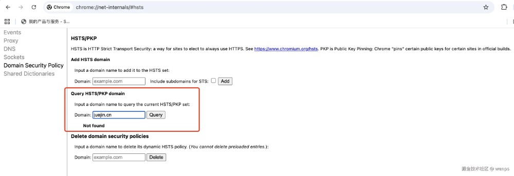 2. 检查 HSTS 缓存 - chrome://net-internals/#hsts